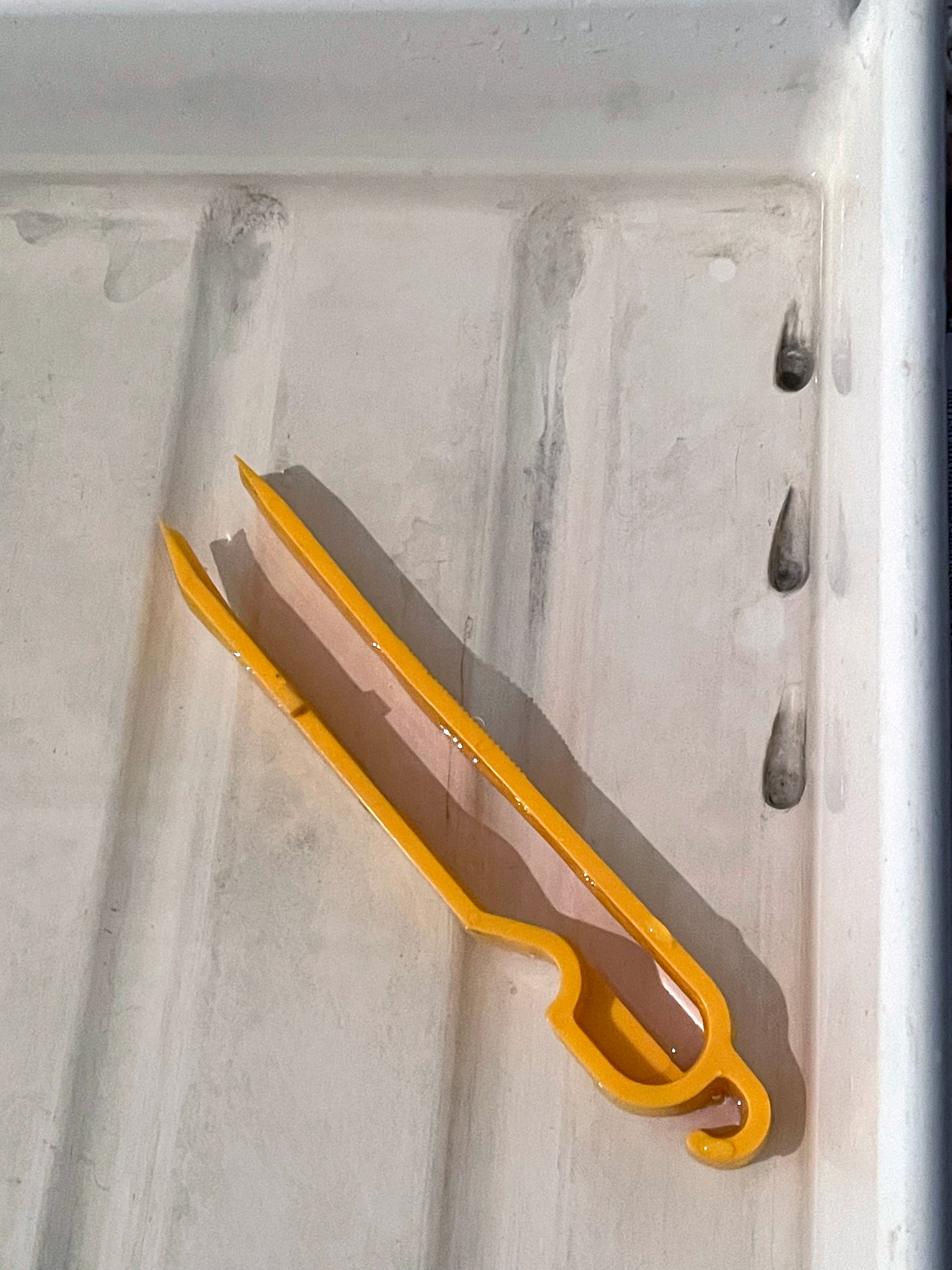 There are many designs for print tongs and personally I don’t like most of them. I prefer tongs that grip at the very end, but are not sharp. The old type that Paterson made were perfect, but the current type grip about a quarter of an inch further back. There is another type that might be Paterson, but I can’t remember, they have a clip near the end that locks the ends together when you use them. If I have a pair (the yellow ones in the pictures) I snap this bit off. This type also have sharp corners which can easily damage the print surface.