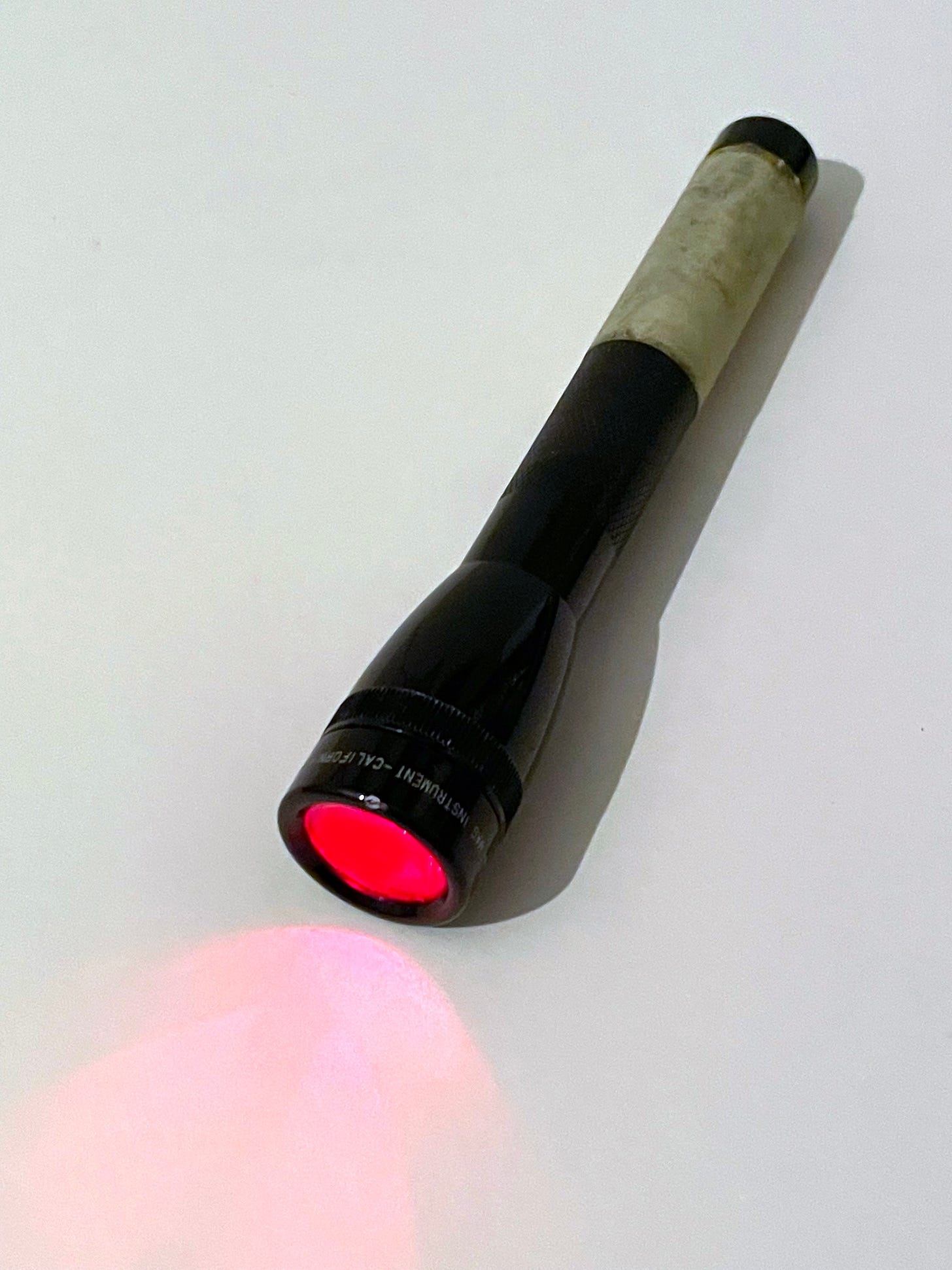 I have a small torch near my baseboard with a red filter over the light. This is really handy for finding things when you have paper out and can’t put the lights on, because dropped items fall into dark spaces and roll under cupboards where you can’t find them with annoying regularity. You can make a red safe torch light by getting a second hand red filter that is the diameter of your torch and taping it on with black gaffa tape.