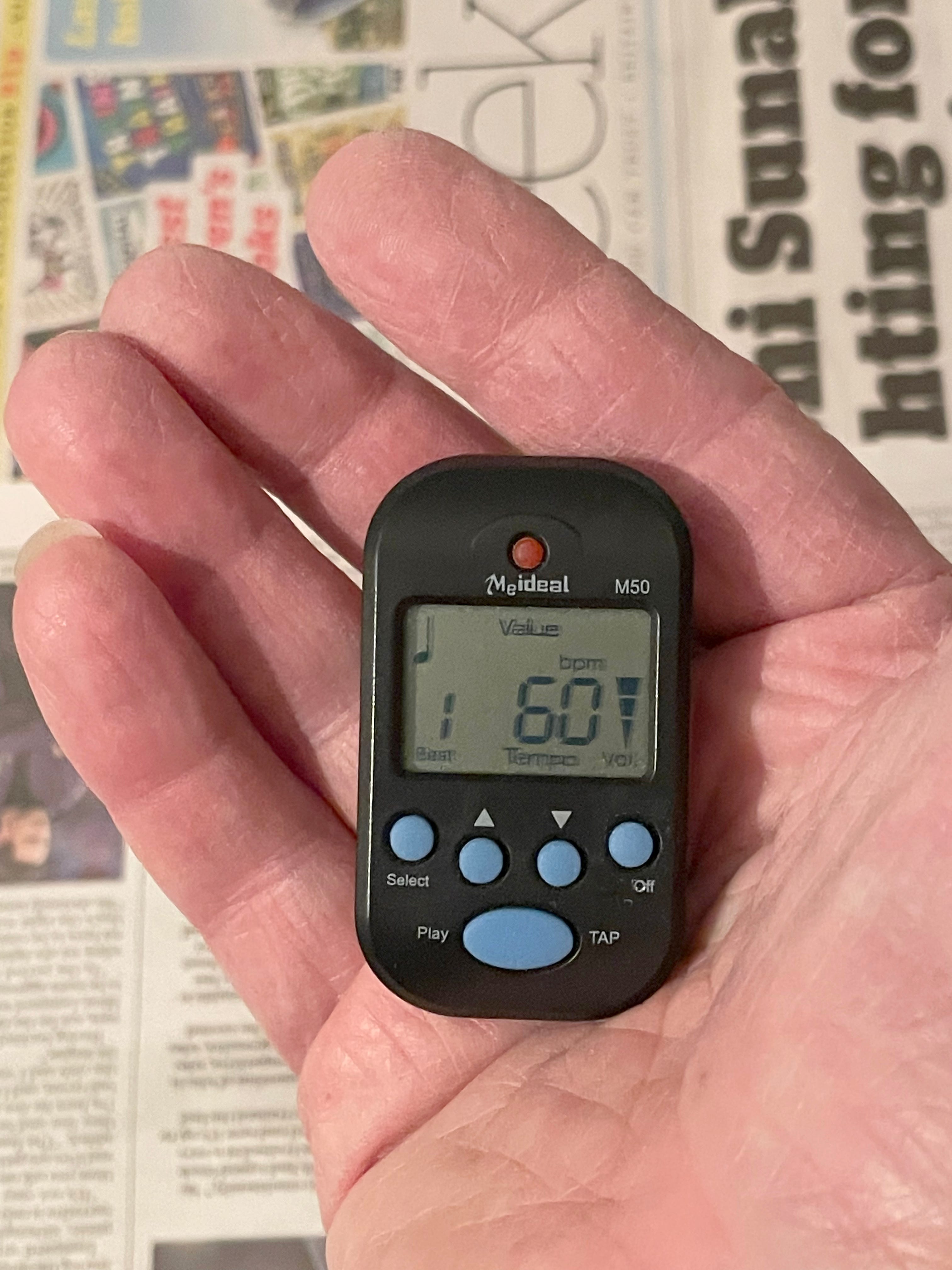 Put the strip of paper on the baseboard and cover it. Put the enlarger on and wait for the lamp to warm up (cold cathode enlargers take ten to fifteen minutes, so are best left on for consistency). Put a metronome on to tick every second, then uncover the test and count as you move the card in stages over the paper. It takes a bit of practice to consistently move the card exactly on the tick, but once you get it, you will always manage it instinctively.